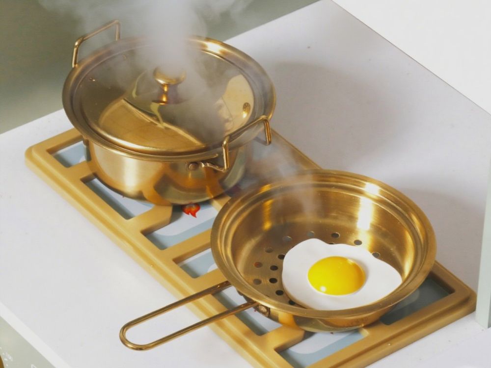 U kompletu se nalazi bogat set dodataka – lonci, poklopci, tava, šalice, zdjela i hrana.