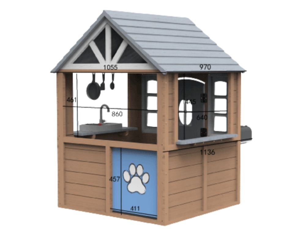Dječja drvena vrtna kućica Klasik namijenjena je za vanjsku upotrebu u vrtu ili dvorištu te uključuje i poseban ulaz za kućne ljubimce. Izrađena je od izdržljivog drva otpornog na vremenske uvjete za dugotrajnu i sigurnu igru. U ELIS DESIGN biramo i razvijamo smislene dječje proizvode od kvalitetnih, po mogućnosti prirodnih materijala, inspirirane Montessori pristupom.