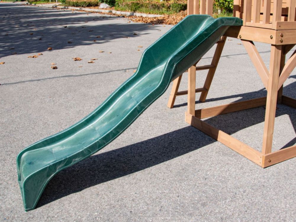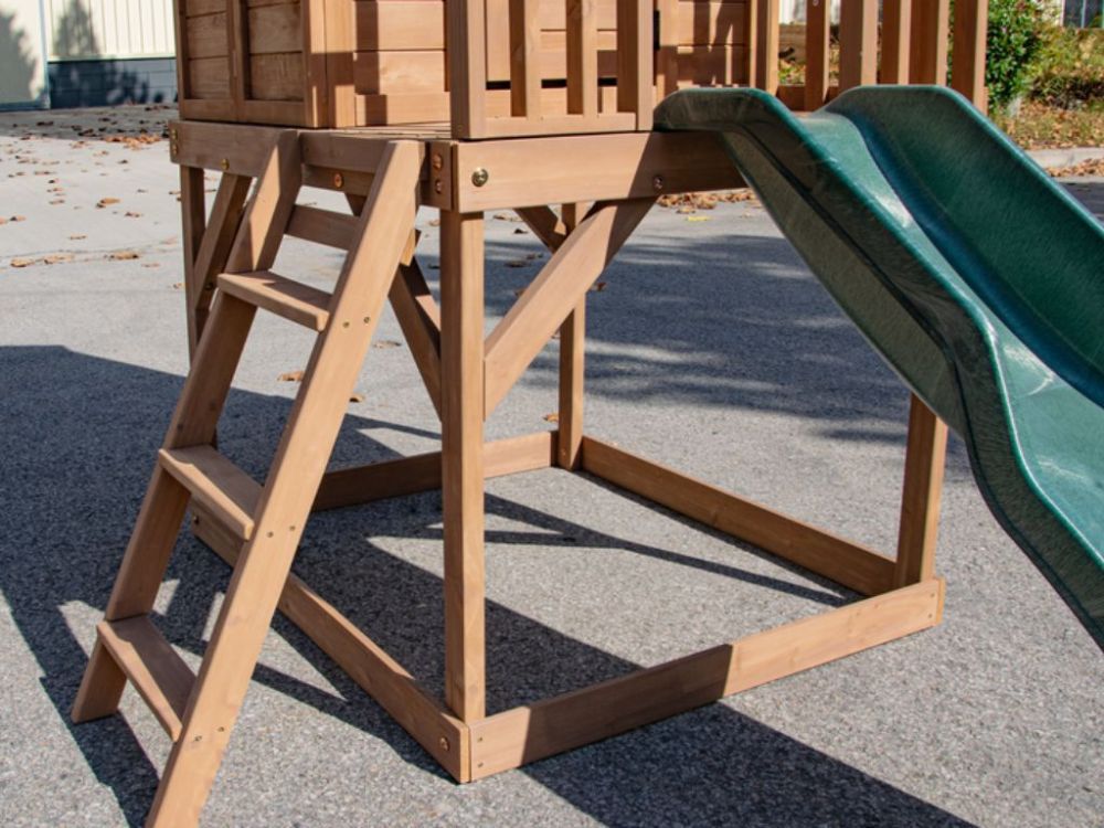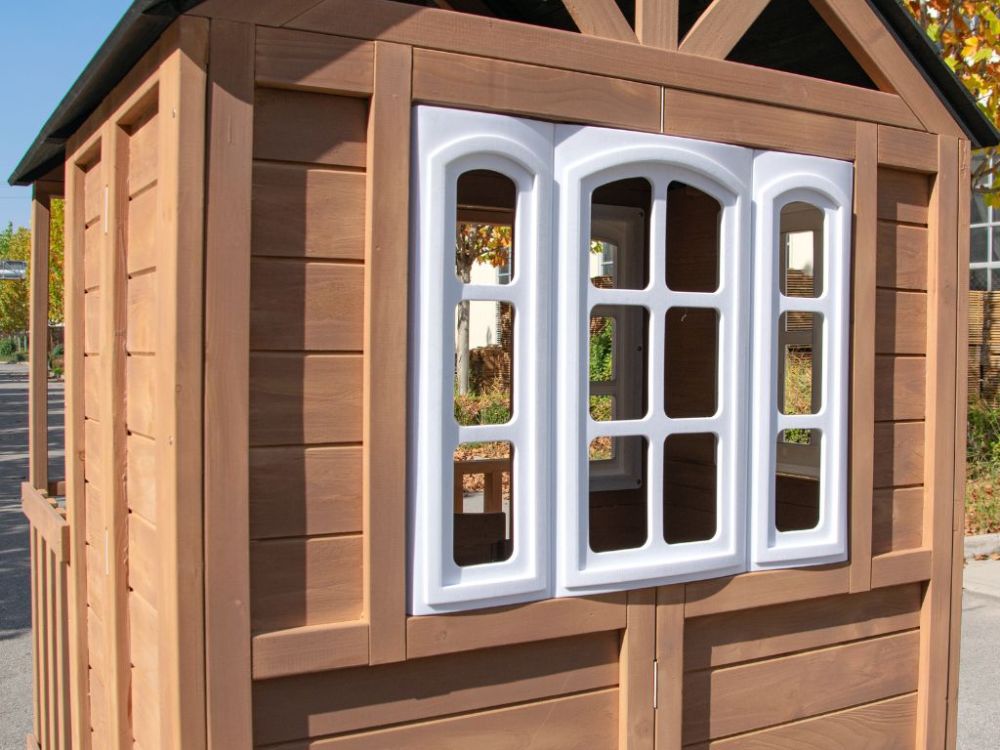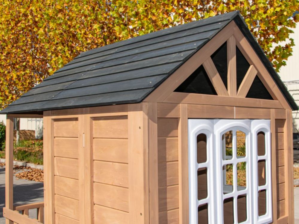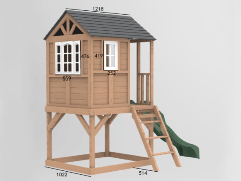 Dječja drvena vrtna kućica s toboganom pruža djeci aktivnu i maštovitu igru na otvorenom. Podignuta platforma, ugrađeni tobogan i ljestve omogućuju sigurno penjanje, spuštanje i istraživanje. Prostor ispod platforme može se koristiti kao pješčanik, čime kućica nudi više zona za igru u jednoj konstrukciji. Idealna je za dvorište ili vrt te potiče kretanje, kreativnost i razvoj motoričkih vještina.