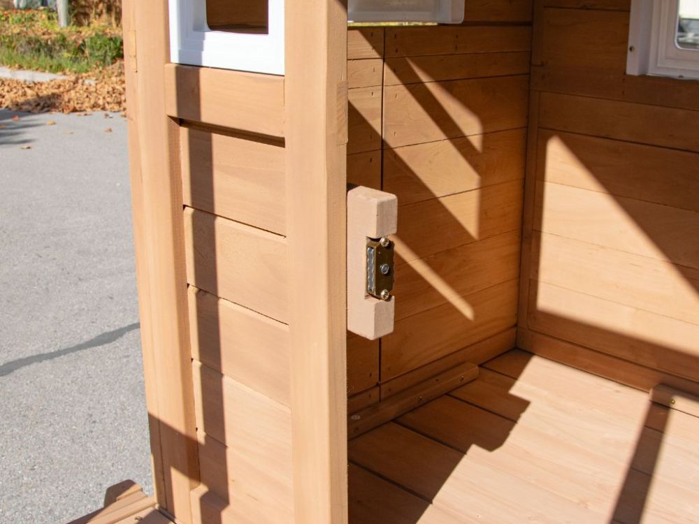 Kućica je izrađena od kvalitetnog jelovog drva koje osigurava dugotrajnost i otpornost na vremenske uvjete. Konstrukcija je stabilna i prilagođena dječjoj igri na otvorenom. Montaža je jednostavna uz priložene upute i isporuku u dva paketa. U ELIS DESIGN biramo i razvijamo smislene dječje proizvode od kvalitetnih, po mogućnosti prirodnih materijala, inspirirane Montessori pristupom.