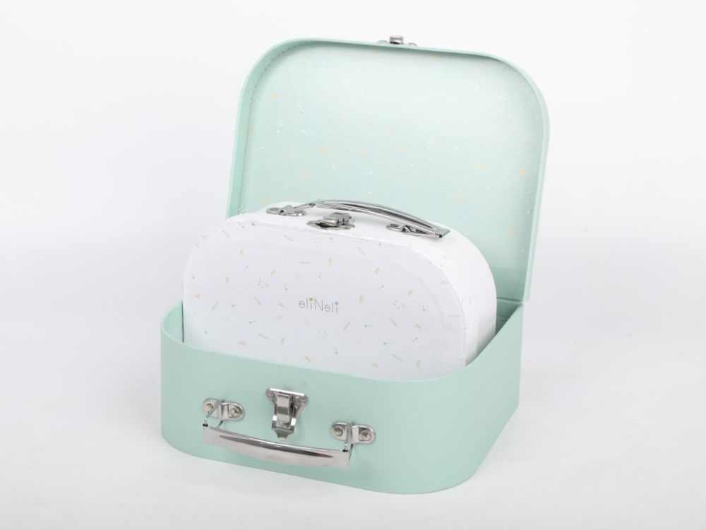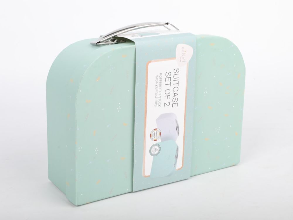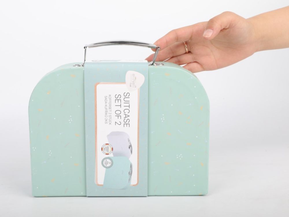Set od 2 elegantna dječja kofera - 1 veći kofer + 1 manji kofer, odličan je prostor za pohranu malih igračaka, pribora za crtanje i ostalih dječjih potrepština. Koferi će olakšati čišćenje i nošenje . Zahvaljujući neutralnim pastelnim bojama i suptilnom uzorku , dječji koferi prikladni su i za djevojčice i za dječake, prekrasan su ukras za dječju sobu i praktična prtljaga za putovanje u školu . Set kofera prikladan je ne samo za djecu, već i za majke i ostale članove obitelji. U njima možete pohraniti pribor za šivanje, heklanje ili druge hobi aktivnosti.
