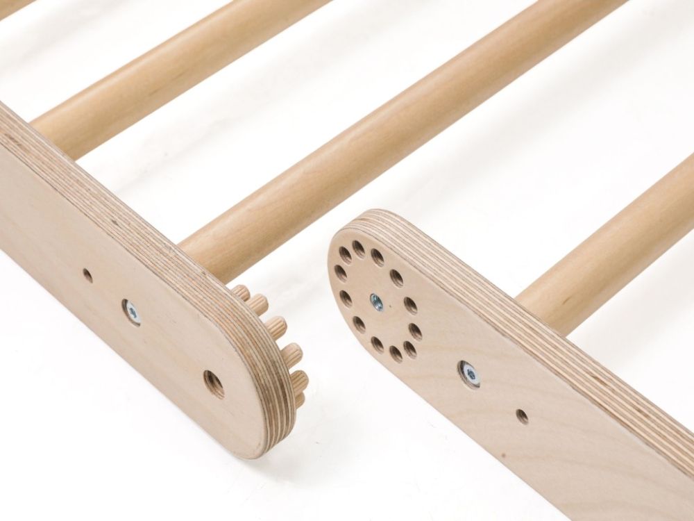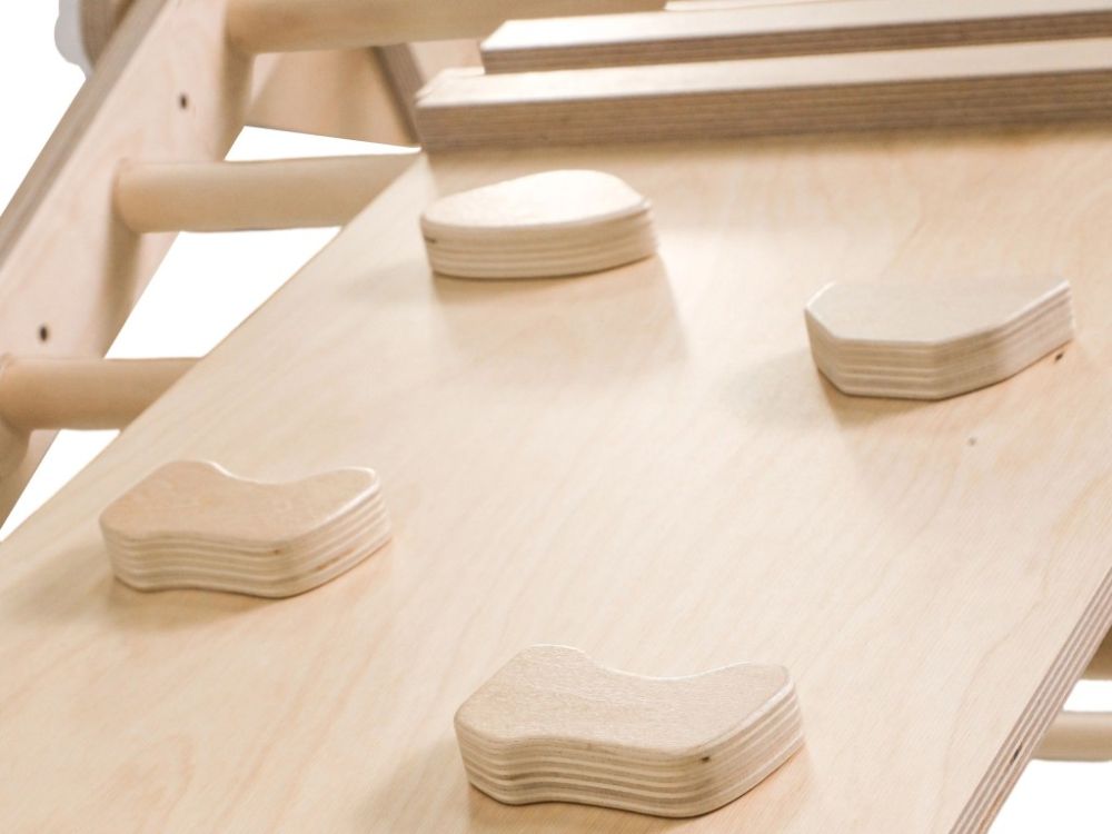Kombiniranjem svih dijelova i pričvršćivanjem na zid dobiva se stabilno varijabilno vježbalište koje djeci nudi prostor za penjanje, vježbanje i razvoj motoričkih vještina.
