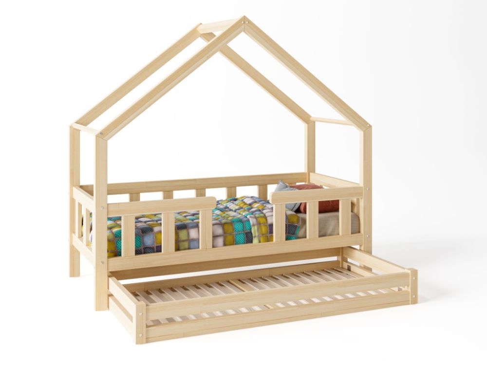 Dječji krevet u obliku kućice spaja maštoviti dizajn i funkcionalnost u jednom komadu namještaja koji vizualno podiže svaku dječju sobu. Premium kućica u modernom skandinavskom stilu stvara ugodan, zaštićen kutak za spavanje, ali i za igru i maštanje. Kvalitetno obrađeno prirodno drvo, elastična podnica i promišljeni sigurnosni detalji zadovoljavaju visoke zahtjeve za udobnost, čvrstoću i dugotrajnu svakodnevnu upotrebu.