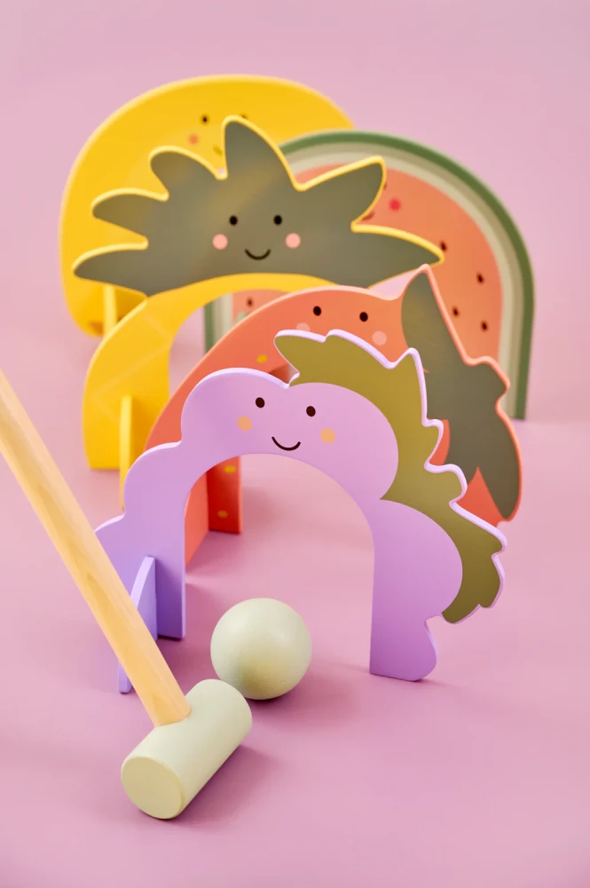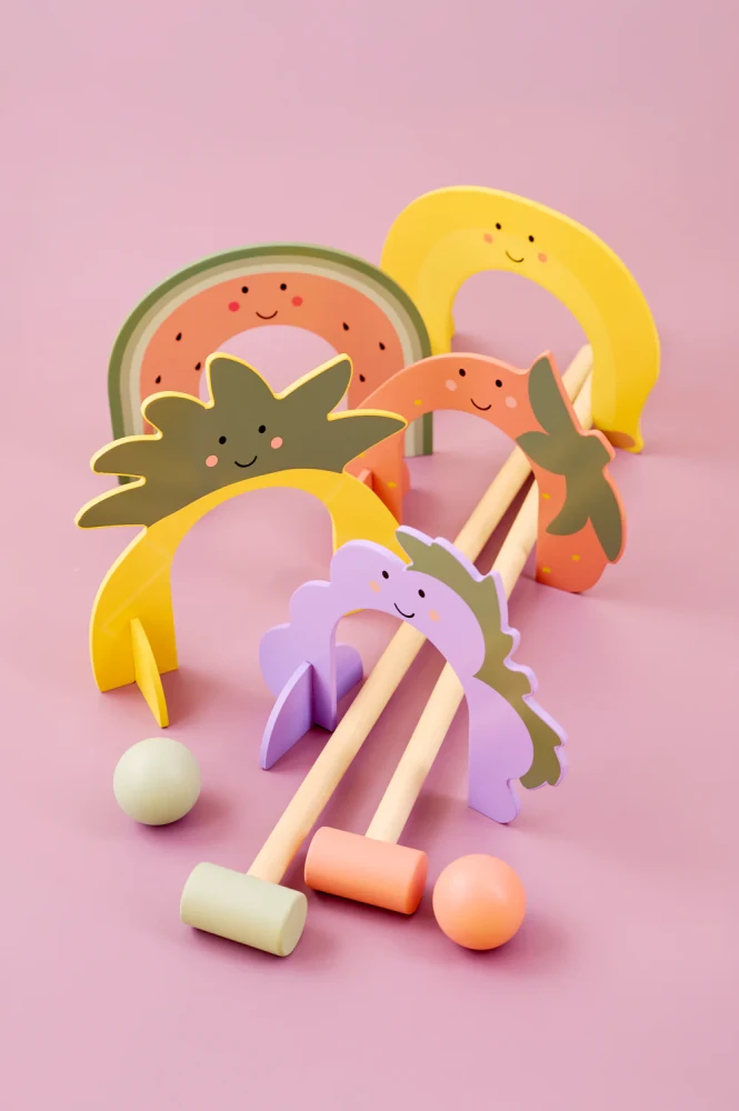 Dječji kriket idealan je za obiteljska ili prijateljska okupljanja i namijenjen djeci od 3 godine, no zbog univerzalnosti i atraktivnog dizajna privući će i stariju djecu i odrasle. Set sadrži šarene gole u obliku voća koje igri dodaju vizualnu privlačnost i dodatnu zabavu, a svaki potez potiče planiranje, koordinaciju i timski duh.