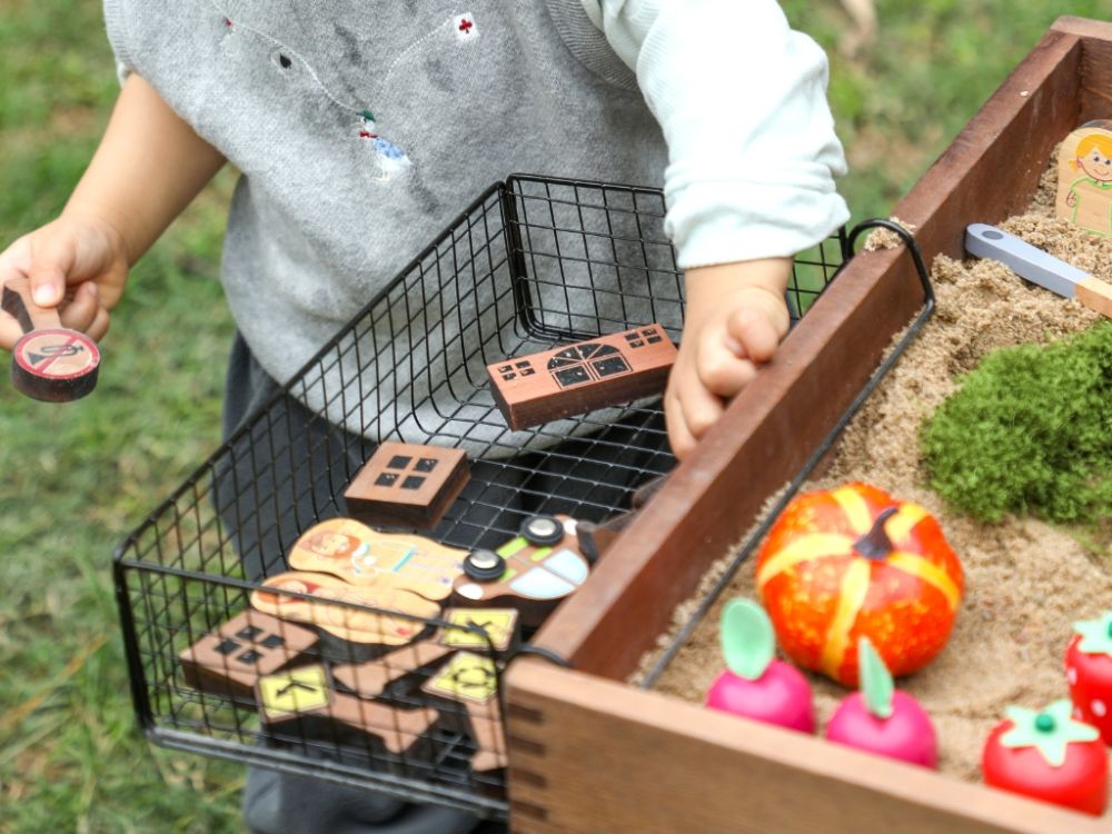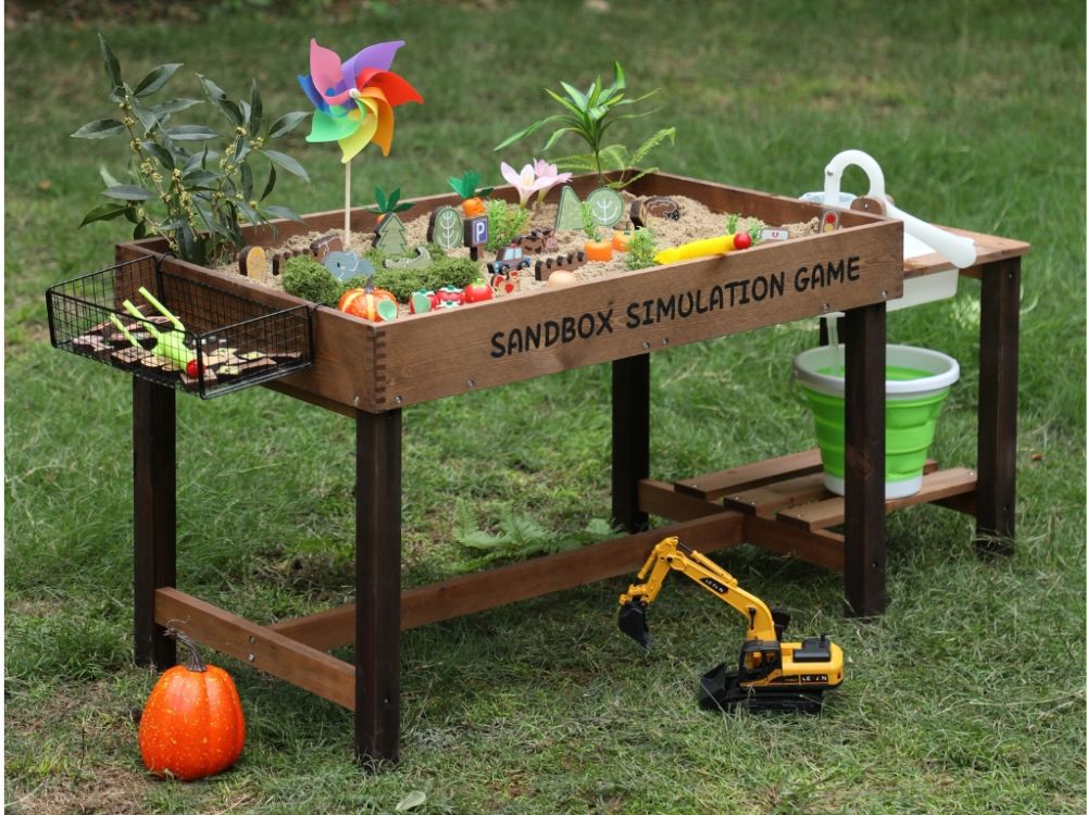 Dječji vanjski pješčanik - visoki omogućuje djeci igru u kojoj prirodno razvijaju socialne vještine i sposobnost dogovora. Pri zajedničkoj igri s braćom i sestrama ili prijateljima djeca komuniciraju i uče surađivati, dok igra tako prirodno razvija sposobnost suradnje. Umivaonik s ispustom u sklopivi koferic osigurava jednostavno održavanje čistoće, a odlagačka košarica omogućuje praktično pohranjivanje alata za igru.