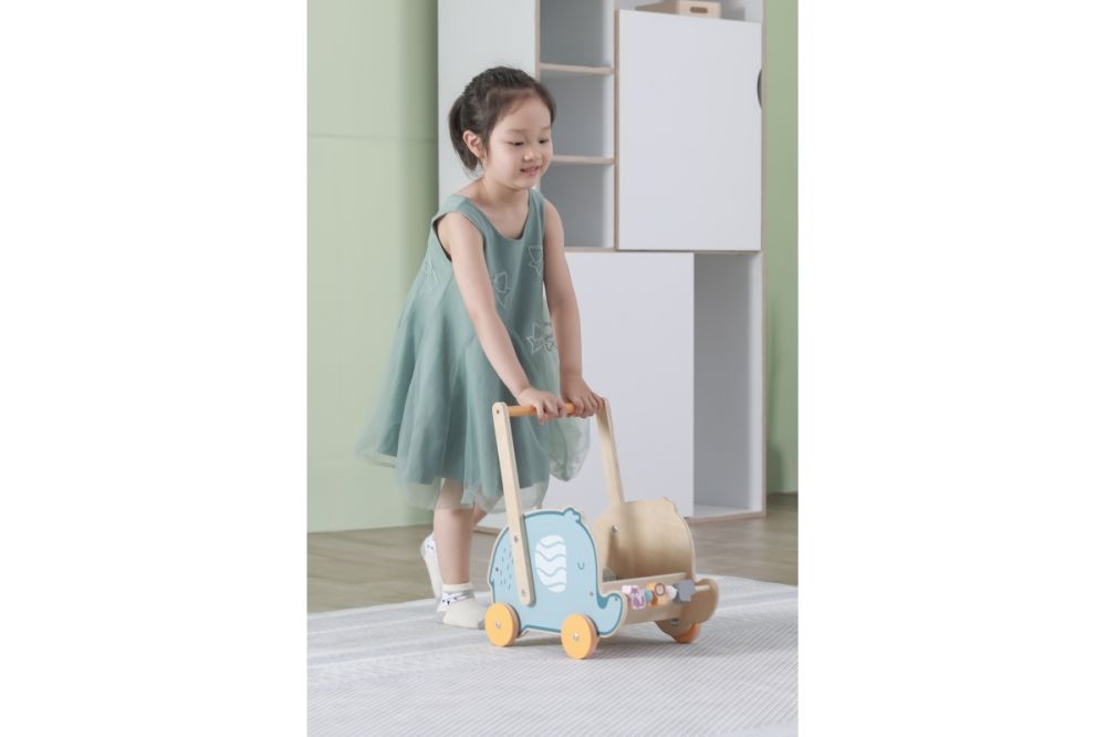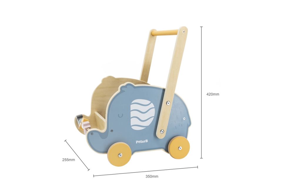 Drvena hodalica s elementima za igru, u originalnom dizajnu slona, bit će idealan poklon za djecu koja se već pripremaju na prve samostalne korake. Stabilna dječja hodalica od drva pomoći će djeci u održavanju ravnoteže pri prvim pokušajima hodanja i pružit će im mogućnost da udobno premjeste omiljene plišane i druge igračke. Imate li kod kuće malog nemirnog mališana koji se još nije odlučio na prve samostalne korake? Možda mu treba hodalica koja će mu dati samopouzdanje i potrebnu potporu.