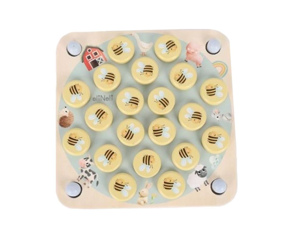 Igra pamćenja , drvena igra pamćenja s pčelama , pripremila je 10 različitih dizajna za djecu, različite težine. Jednostavnom promjenom podloge prilagođava se dobi i znanju svakog djeteta. Dječja igra pamćenja je zabavna društvena igra i edukativni alat u jednom.