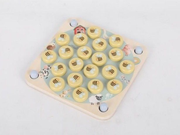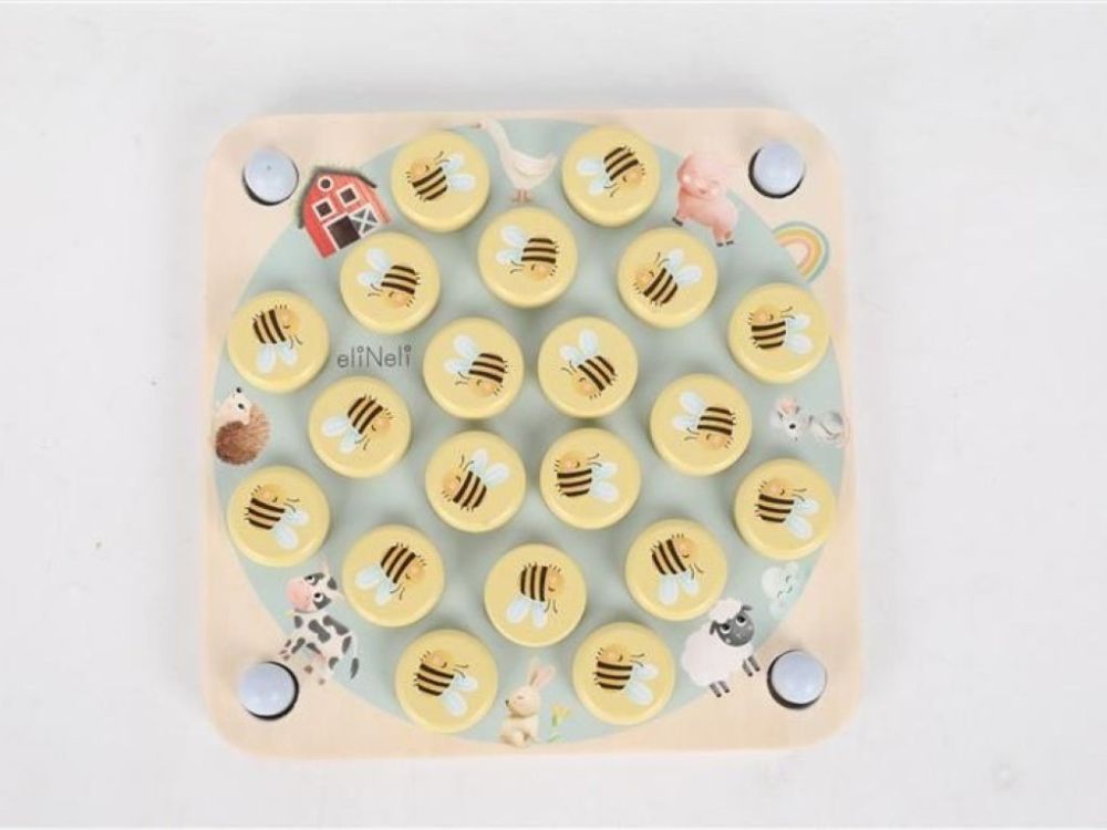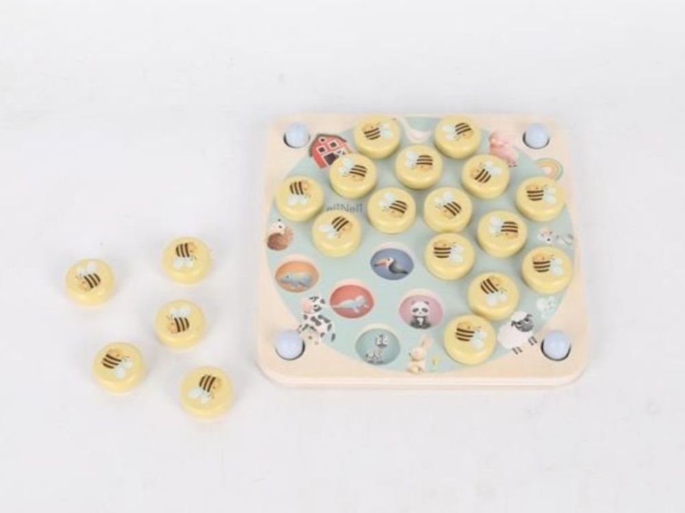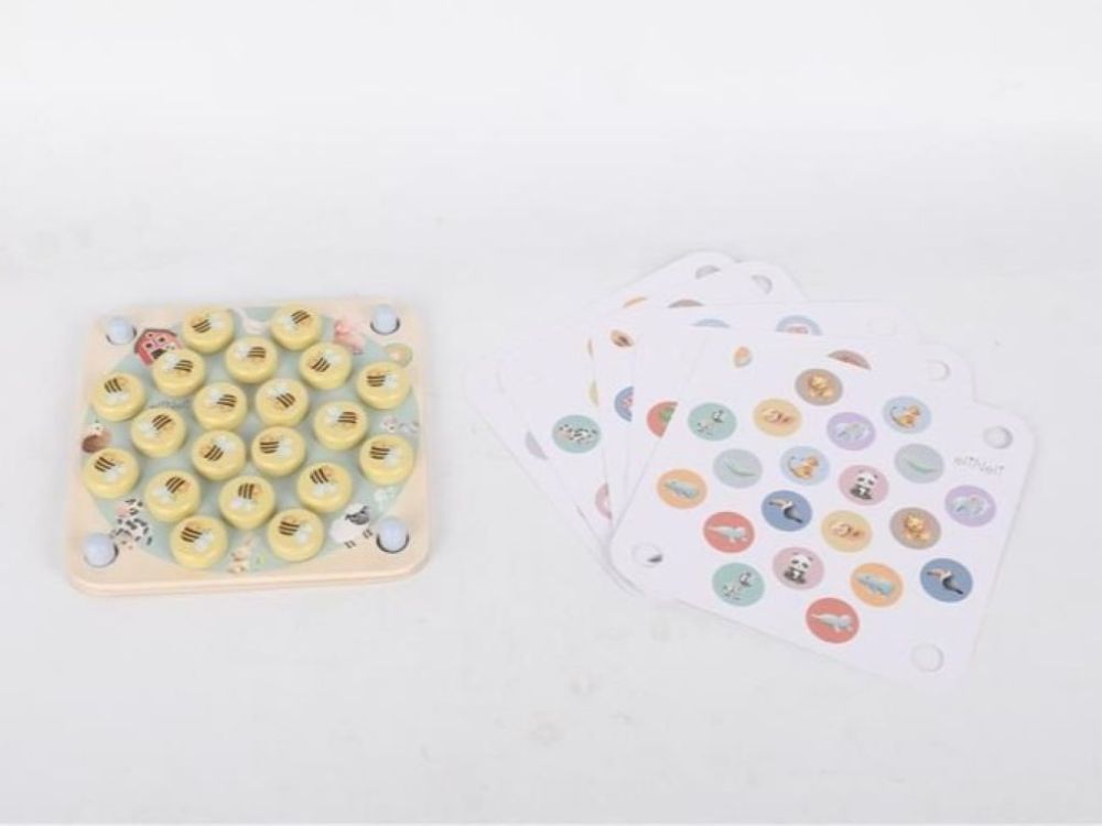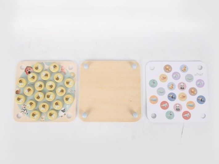 Igra pamćenja , drvena igra pamćenja s pčelama , pripremila je 10 različitih dizajna za djecu, različite težine. Jednostavnom promjenom podloge prilagođava se dobi i znanju svakog djeteta. Dječja igra pamćenja je zabavna društvena igra i edukativni alat u jednom.