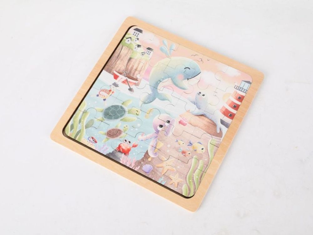 Drvena slagalica s motivom morskog svijeta oduševit će sve male istraživače podvodnog života. Visokokvalitetni drveni dizajn jamči sigurnu i zabavnu igru koja razvija finu motoriku i logičko razmišljanje. Idealna edukativna igračka za djecu od 2 godine , prikladna kao originalan poklon za svaku prigodu.