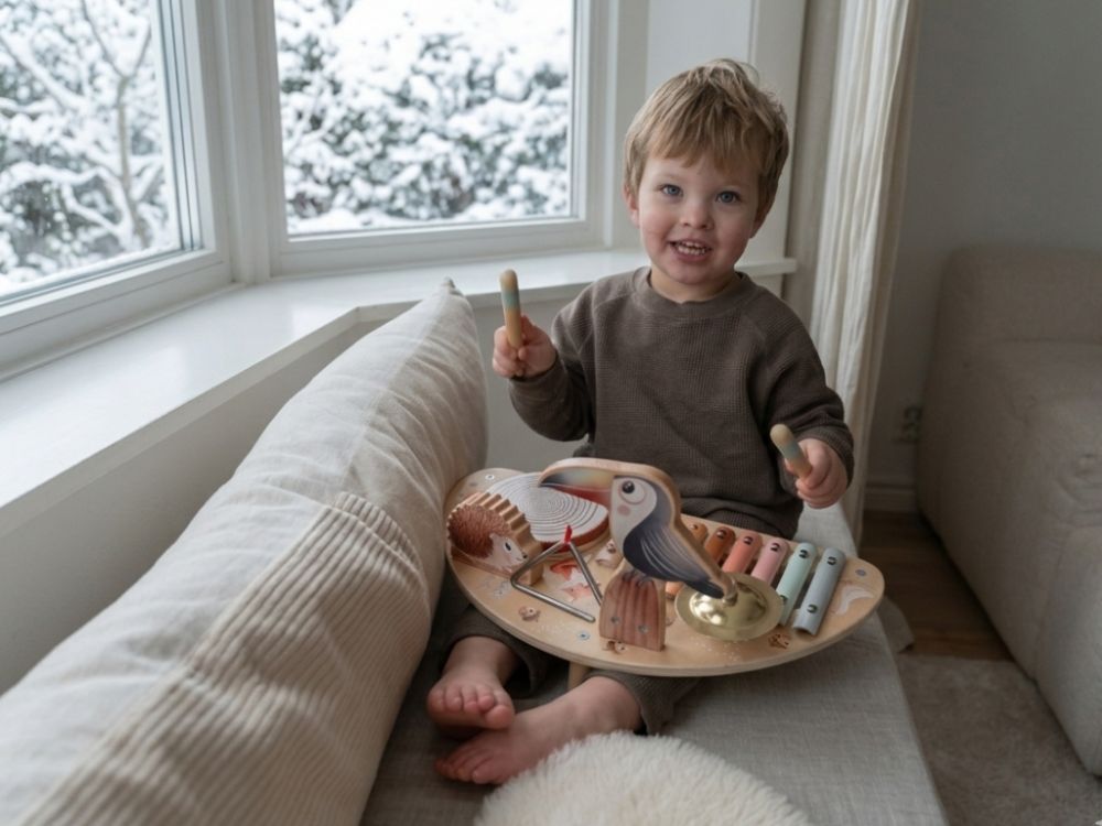 Drveni glazbeni stol sa setom glazbenih instrumenata za djecu u nježnim pastelnim bojama očarat će svako dijete i probuditi njihovu ljubav prema glazbi. Glazbeni stol sadrži dječje glazbene instrumente koji potiču osjetila, razvijaju finu motoriku i upoznaju djecu sa zvukovima koje svaki instrument proizvodi i načinom sviranja.