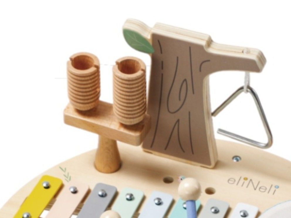 Ovaj glazbeni stol uključuje pet osnovnih instrumenata koji djeci omogućuju da istražuju svijet zvukova i ritma.