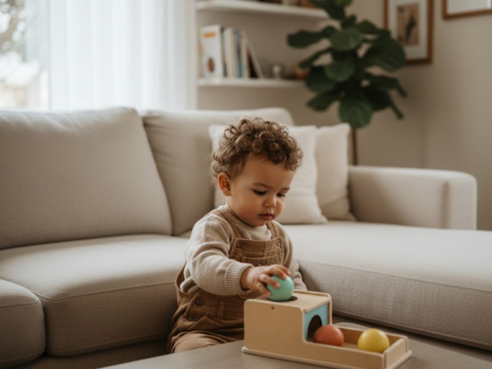Drvena kutija s šarenim lopticama razvija motoriku i logičko razmišljanje. Idealna motorička igračka za djecu od 12 mjeseci s fascinantnom igrom ponavljanja.