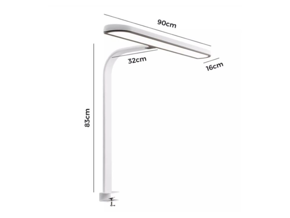 Elegantna i minimalistička bijela stolna lampa s LED osvjetljenjem dugoročno će služiti djeci i odraslima. Podesivi krak i rotirajuća glava idealni su za optimalno postavljanje. Pričvršćivanje lampe na ploču stola jednostavno je, pomoću kopče. Lampa je dizajnirana tako da pruža izvrsno široko osvjetljenje i istovremeno štiti vaše oči. Svijetli dio dugačak 90 cm osvijetlit će zaista široku površinu.