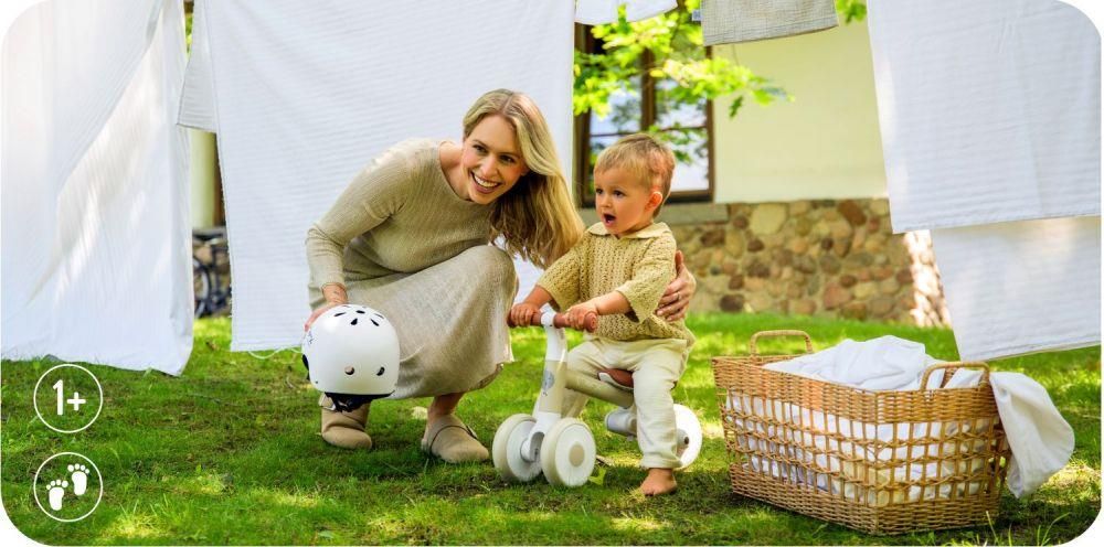 MoMi DEX bicikl za ravnotežu bež boje namijenjen je djeci od 1 godine starosti. Zahvaljujući stabilnoj konstrukciji, prikladan je i za mališane koji tek uče hodati. Vožnja potiče razvoj ravnoteže i motorike, dok lagana i kompaktna izvedba omogućuje jednostavno rukovanje.