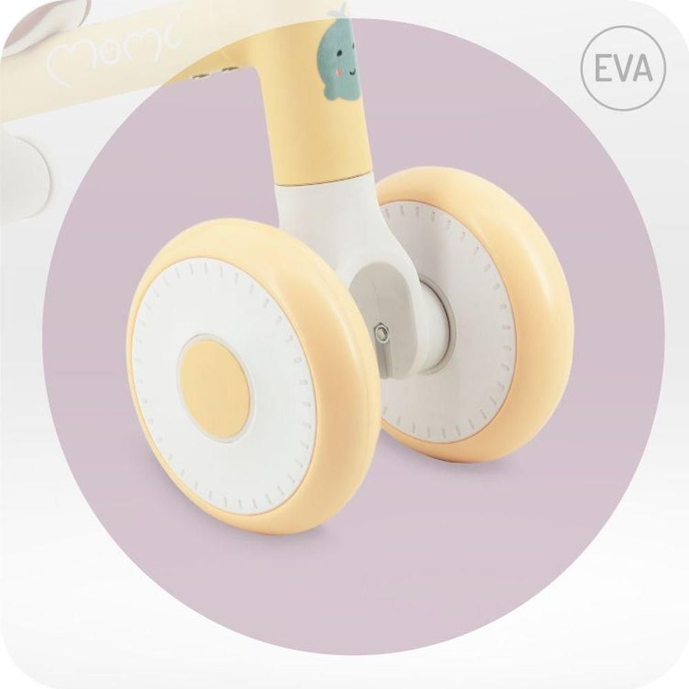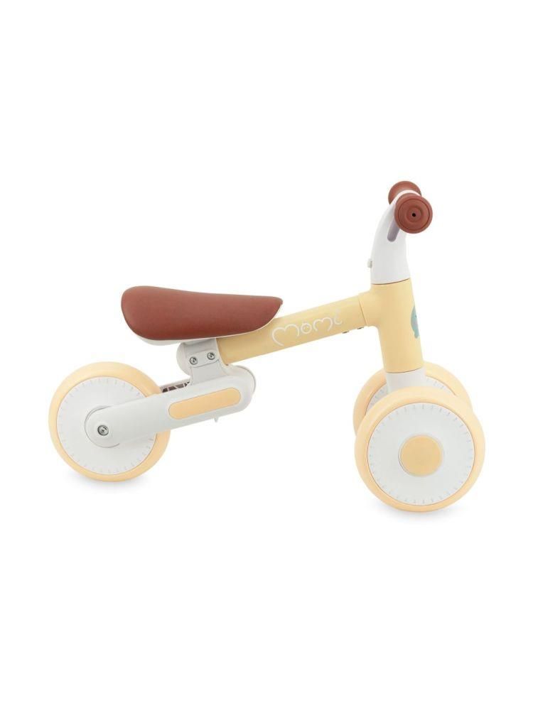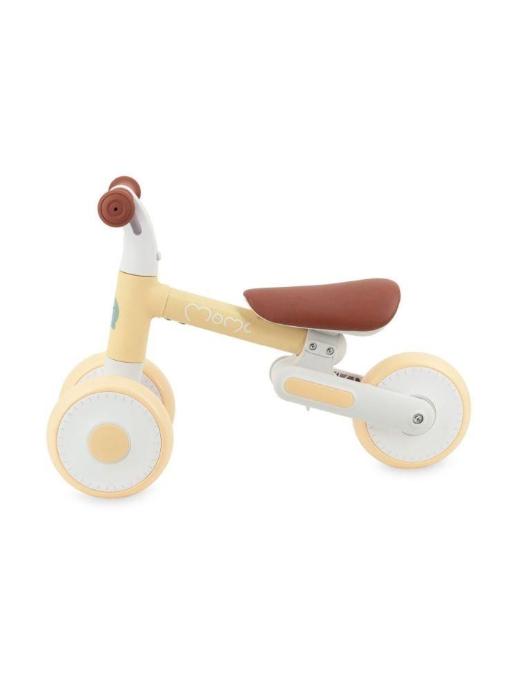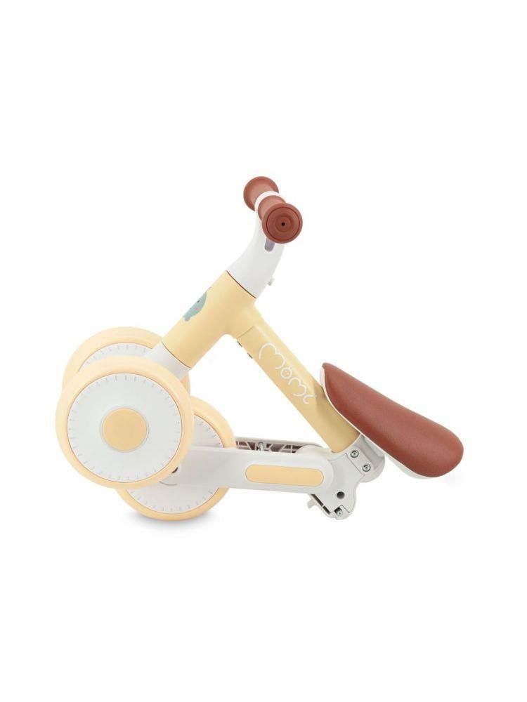 Zahvaljujući kompaktnom dizajnu, MoMi DEX bicikl za ravnotežu žute boje zauzima vrlo malo prostora te može stati čak i u donju košaru dječjih kolica. Jednostavna montaža omogućuje brzo sastavljanje bez upotrebe alata.