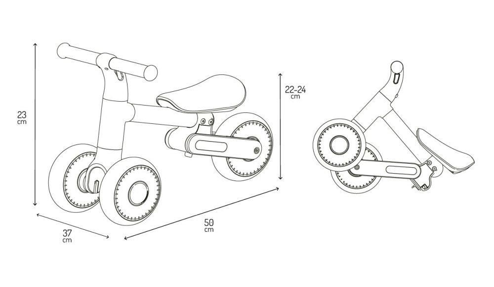 Lagan i stabilan bicikl za ravnotežu sa sklopivim okvirom i podesivim sjedalom. Namijenjen djeci od 1 godine za razvoj ravnoteže i motorike.