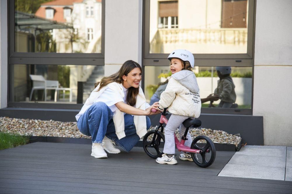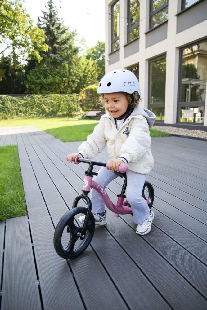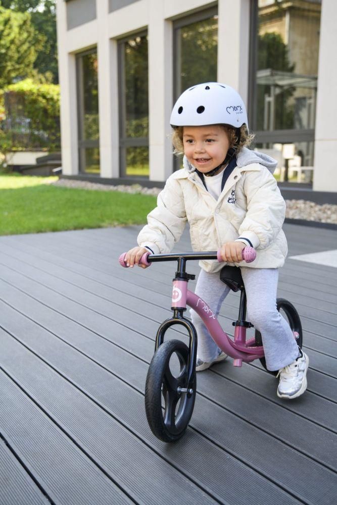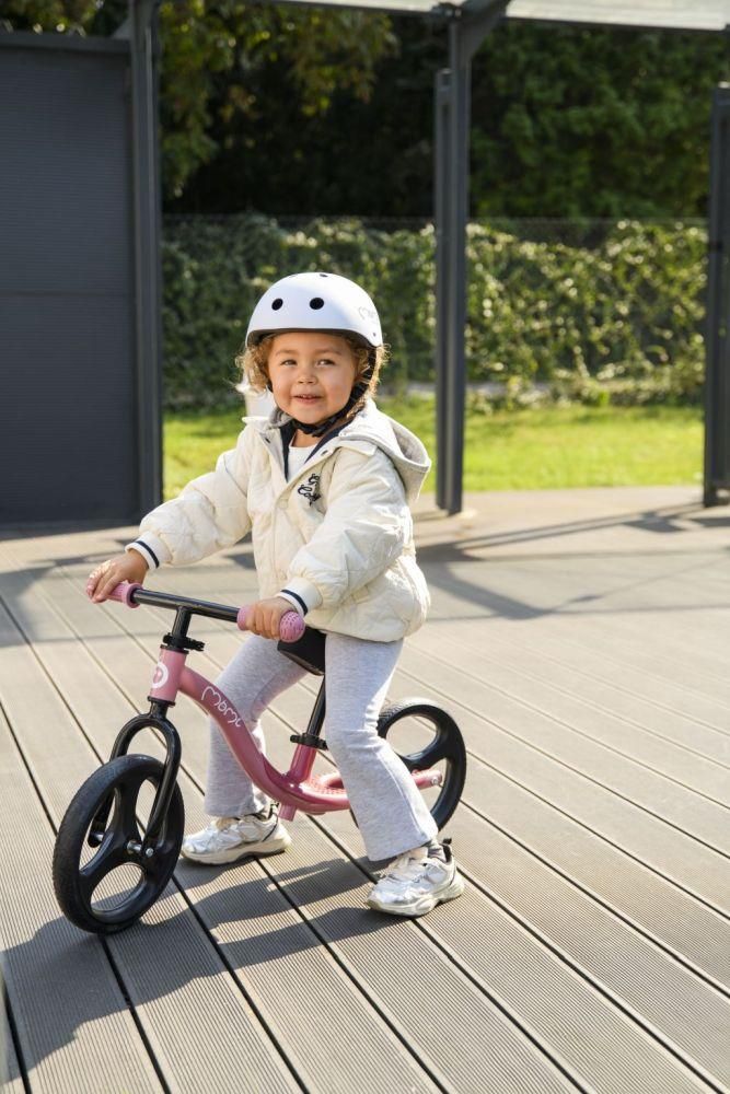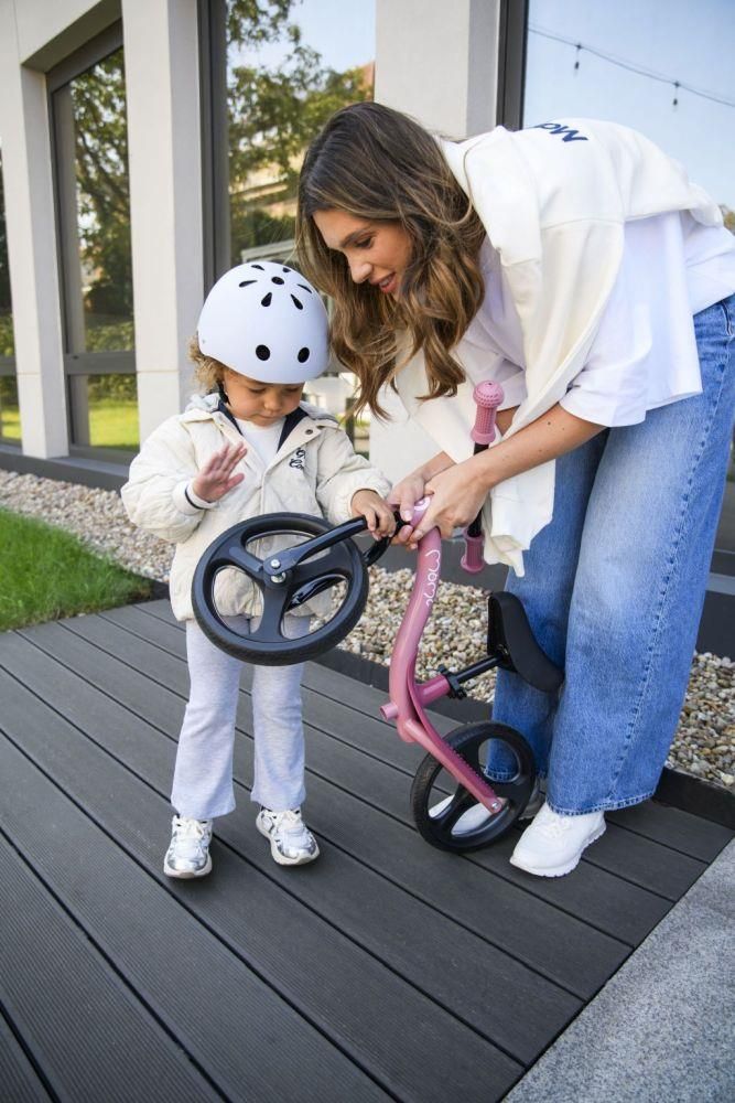MoMi ISOKA LED bicikl bez pedala s kotačima, roza privlači pažnju LED svjetlima na kotačima koja se aktiviraju tijekom vožnje, bez baterija. Lagana i čvrsta konstrukcija osigurava stabilnost, dok podesivo sjedalo i upravljač omogućuju prilagodbu rastu djeteta. Zahvaljujući izostanku blokade upravljača, vožnja je sigurnija i okretnija.