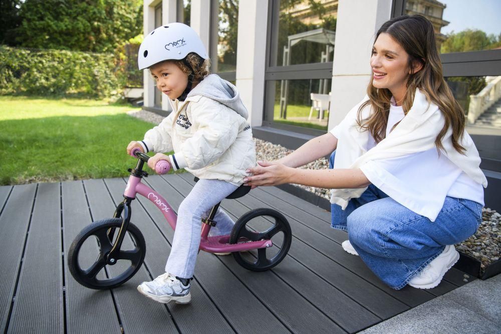 MoMi ISOKA LED bicikl bez pedala s kotačima, roza