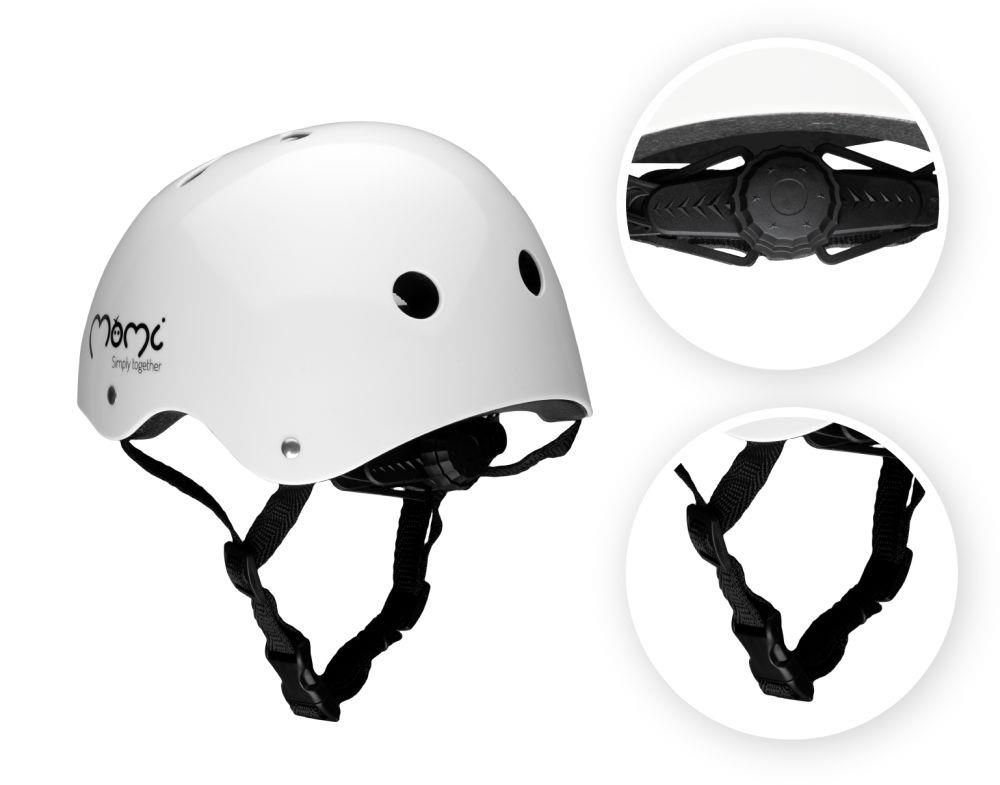 Kaciga MoMi MIMI bijela sigurna je, udobna i lagana zaštitna kaciga za sve male sportaše. Izrađena od visokokvalitetne ABS i EPS ljuske, pruža pouzdanu zaštitu pri vožnji biciklom, romobilom, guralicama i rolama. Neutralna bijela boja čini je prikladnom i za djevojčice i za dječake.