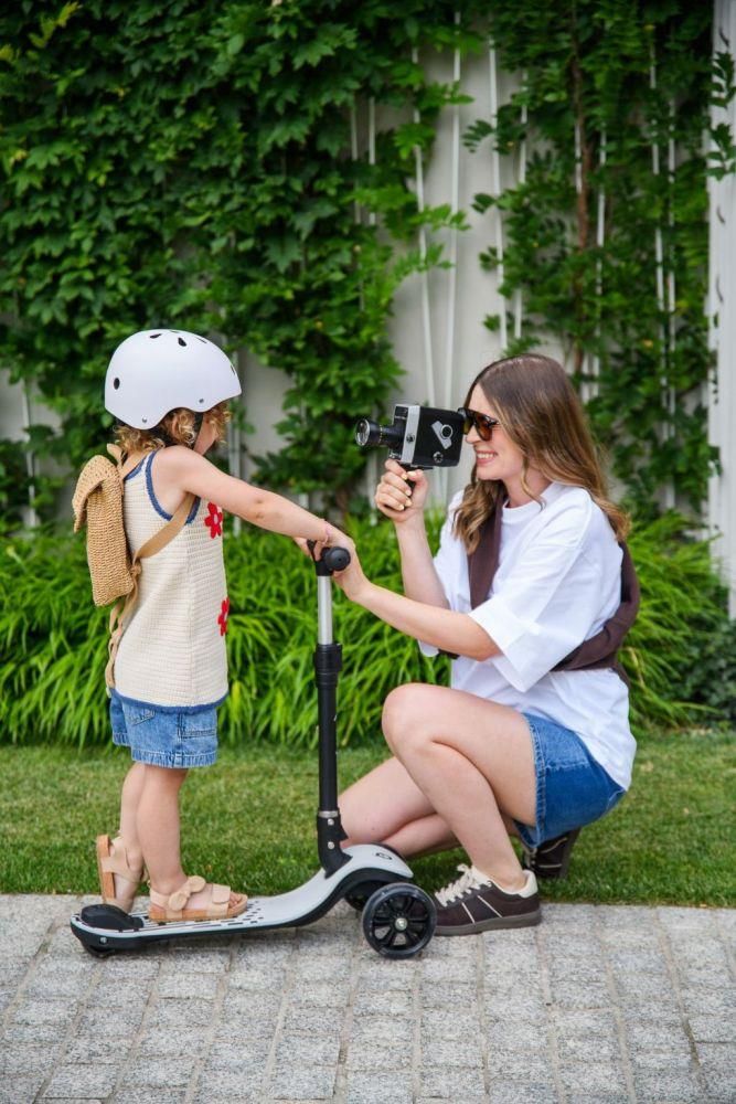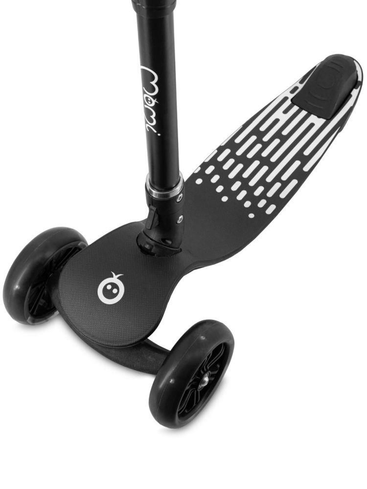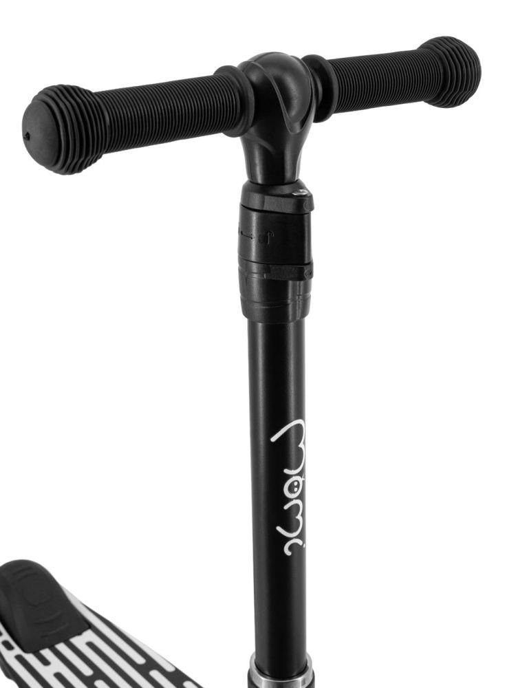 MoMi SAN romobil potiče aktivan životni stil i radost kretanja – bilo na igralištu, u parku ili na šetnji. Stilski crni dizajn prikladan je i za djevojčice i za dječake. Protuklizna površina za nogu, ergonomske ručke i nožna kočnica zajedno osiguravaju sigurno iskustvo vožnje.