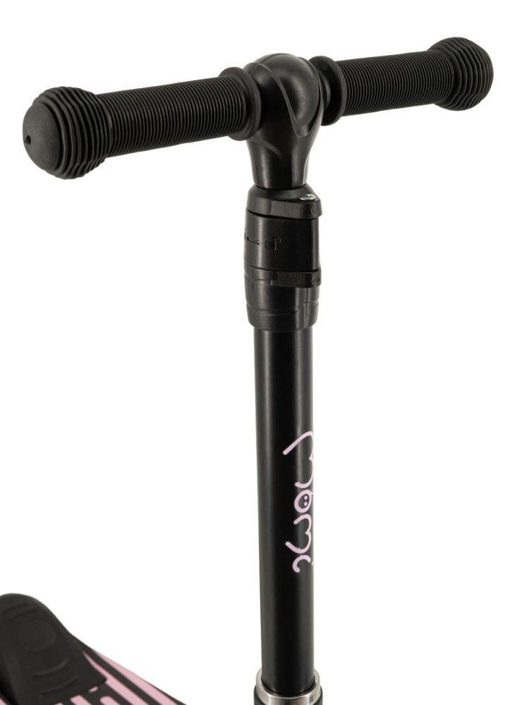 MoMi SAN romobil potiče aktivan životni stil i radost kretanja – bilo na igralištu, u parku ili na šetnji. Privlačna ružičasta boja i moderan dizajn čine ga stilskim dodatkom za svaku malu sportašicu. Protuklizna površina za nogu, ergonomske ručke i nožna kočnica zajedno osiguravaju sigurno iskustvo vožnje.