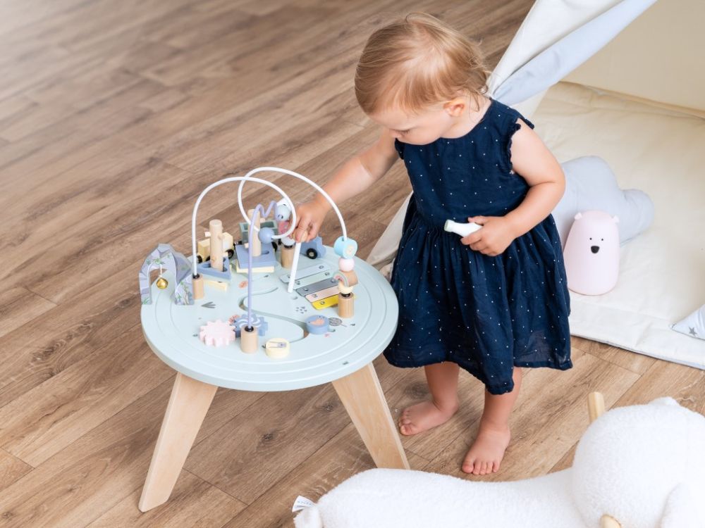Ovaj motorički stol nudi mnoštvo aktivnosti koje istovremeno zabavljaju i educiraju.