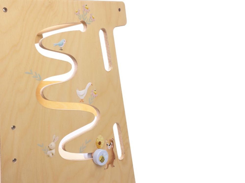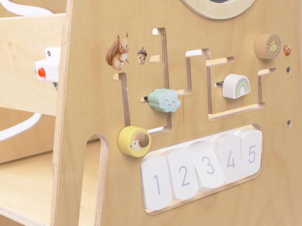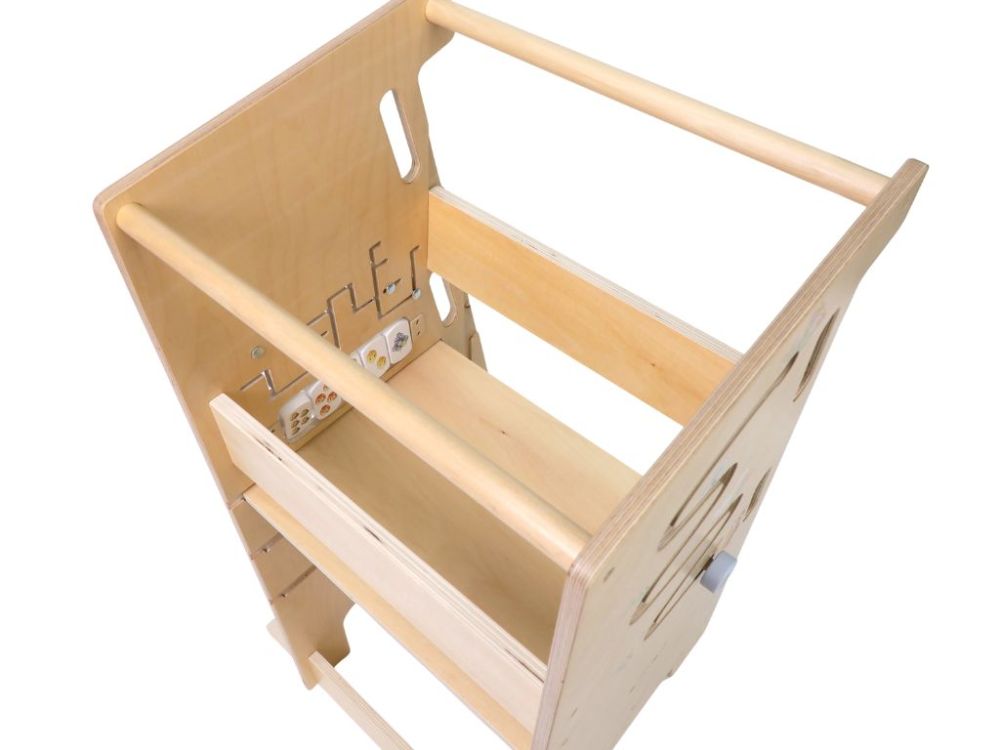 Poboljšani drveni toranj za učenje iz ekskluzivne PRO serije s podesivom platformom do 3 razine rasti će s vašim djetetom i ponuditi mu više od same pomoći u kuhinji. Zahvaljujući novom motivu životinja i multifunkcionalnom dizajnu, služi i kao zabavna aktivna igračka - s jedne strane s ogledalom, labirintom i rotirajućim elementima, a s druge strane s odličnom stazom za loptice. Za maksimalnu sigurnost nadopunjen je stabilizacijskim nogama, potpornim pločama i sigurnosnom ogradom.