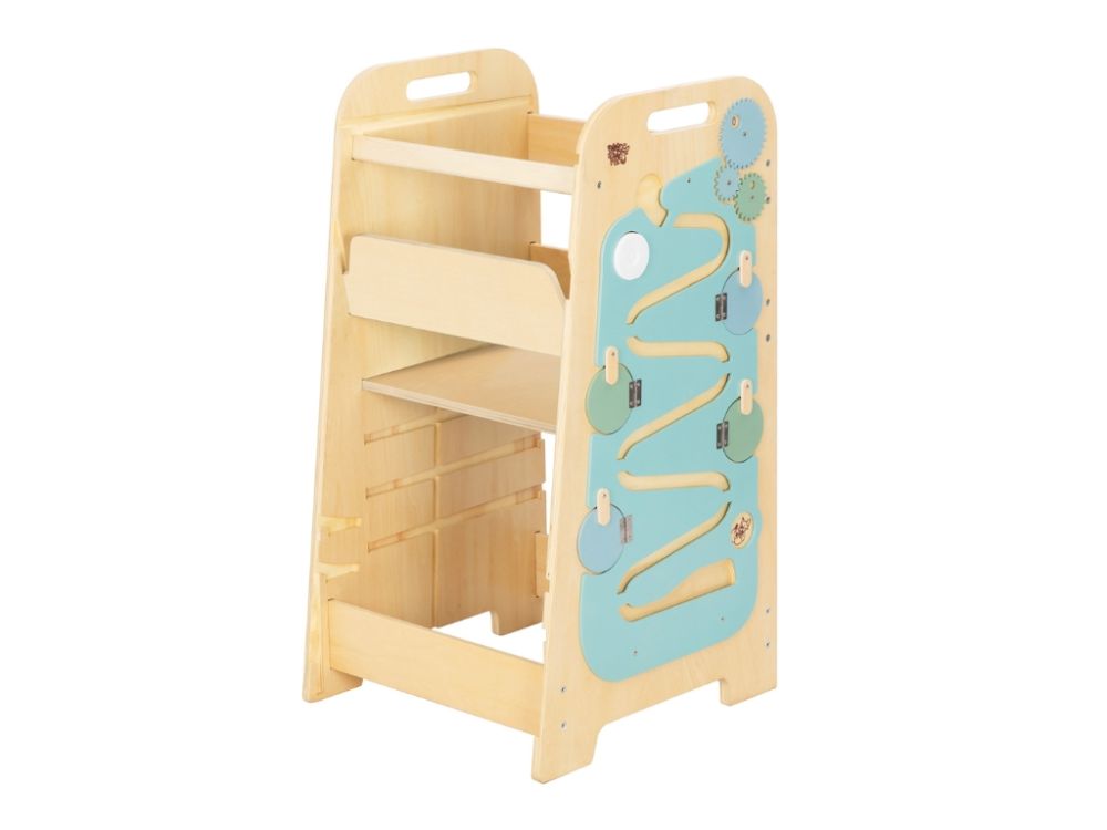 5-u-1 toranj za učenje izrađen od izdržljive brezove šperploče raste s vašim djetetom zahvaljujući 4 podesive visine i može se brzo pretvoriti u praktičan stol i stolicu . Elementi za igru i activity ploča potiču kreativnost i samostalnost.