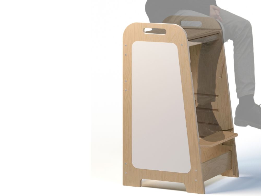 Rastući Montessori toranj za učenje 5u1 Play 89cm - mint lako se prilagođava različitim aktivnostima – od kreativnog crtanja na bijeloj ploči do korištenja kao stolić sa stolicom. Zbog prirodnih svojstava drva moguće su prirodne varijacije (razlike u tonu, čvorovi ili manji popravci), što je uobičajeno za proizvode od šperploče.