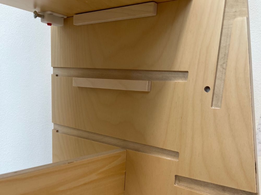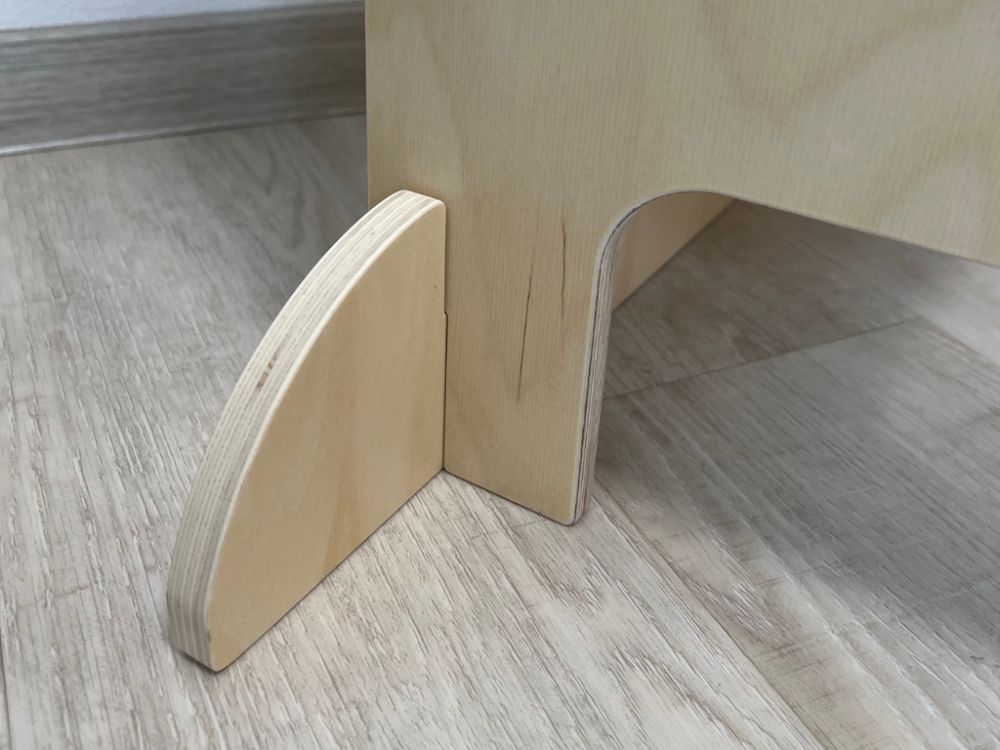 - Materijal: šperploča (15 mm debljine), obrađena prozirnim lakom na bazi vode.
