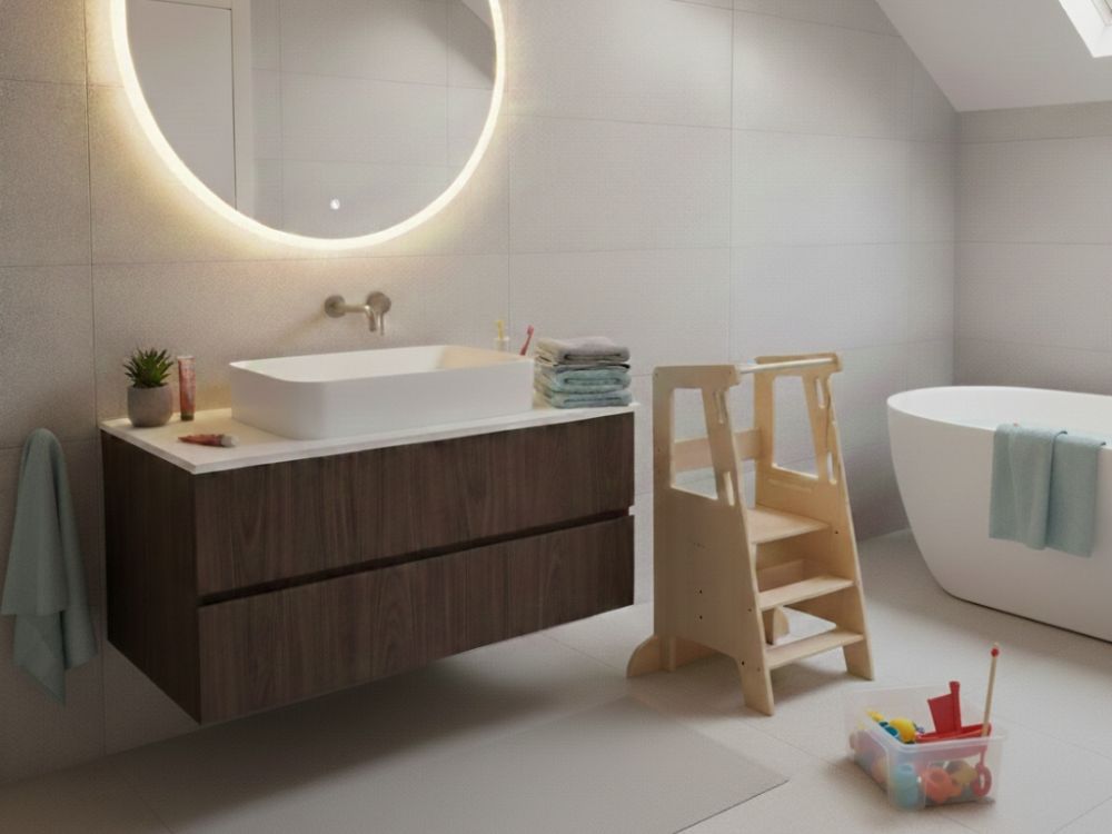 Rastući toranj za učenje 3u1 sa stabilizacijom - od breze omogućuje djetetu da sigurno sudjeluje u svakodnevnim aktivnostima u kuhinji, kupaonici ili dječjoj sobi. Zahvaljujući stabilizacijskim nožicama, zaštitnim bočnim stranicama i čvrstoj konstrukciji, dijete ima siguran oslonac pri svakom penjanju i stajanju. Podesiva visina platforme prati rast djeteta, a jednostavna transformacija u stolić i stolicu produžuje korisnost proizvoda kroz više razvojnih faza.