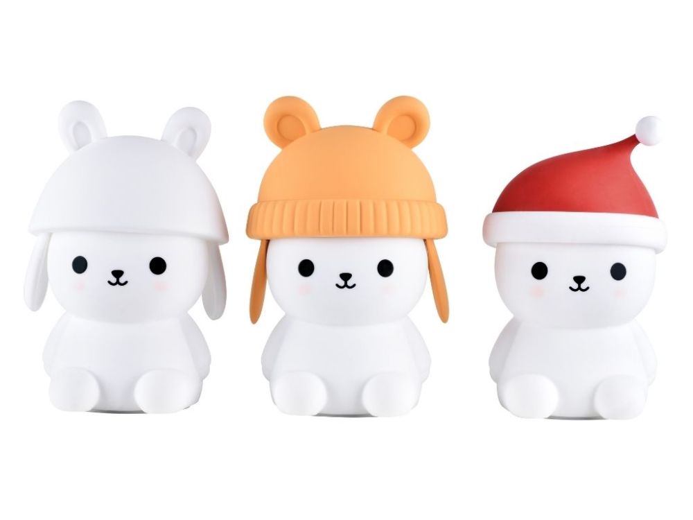 Silikonska lampica u obliku medvjedića nije samo praktično noćno svjetlo, već i lijepa dekoracija. Njen meki materijal i sladak izgled djeca će odmah zavoljeti. Zamjenjive kape dodatno donose zabavu i mogućnost prilagodbe izgleda lampice prema raspoloženju. Siguran silikon ugodan je na dodir, lagan i otporan na oštećenja. Lampica nema oštre rubove niti čvrste dijelove, tako da je idealna za malu djecu i odlično pristaje kao pratilac pri uspavljivanju.