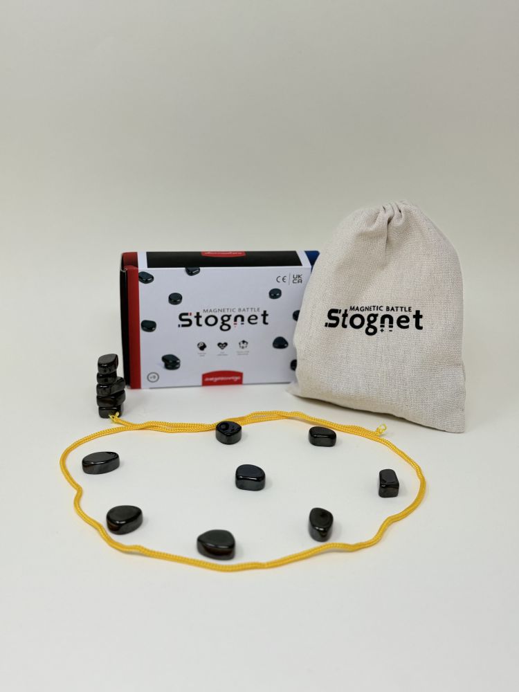 Strateška igra Stognet Magnetsko kamenje donosi uzbudljivu kombinaciju strategije i spretnosti u kojoj svaki potez odlučuje. Igrači se naizmjence izmjenjuju u postavljanju kamenčića i trude se izbjeći njihovo privlačenje – inače ih moraju uzeti natrag. Jednostavno pravilo savladate za nekoliko sekundi, ali svaka partija donosi nove izazove. Pobjeđuje onaj tko se prvi oslobodi svih kamenčića bez greške.