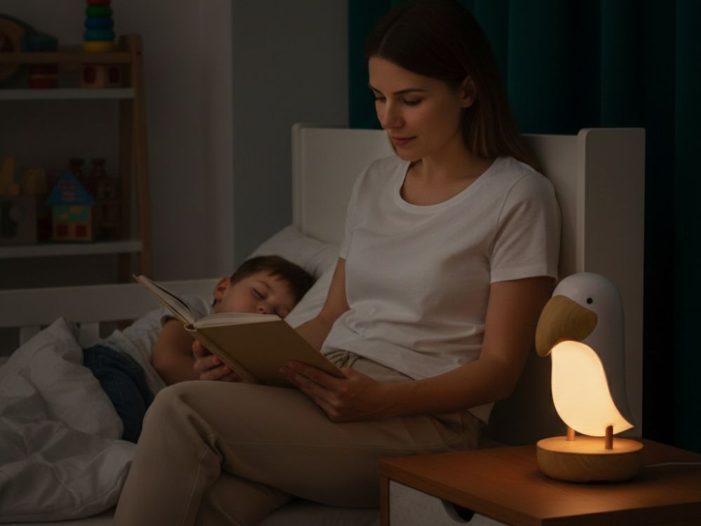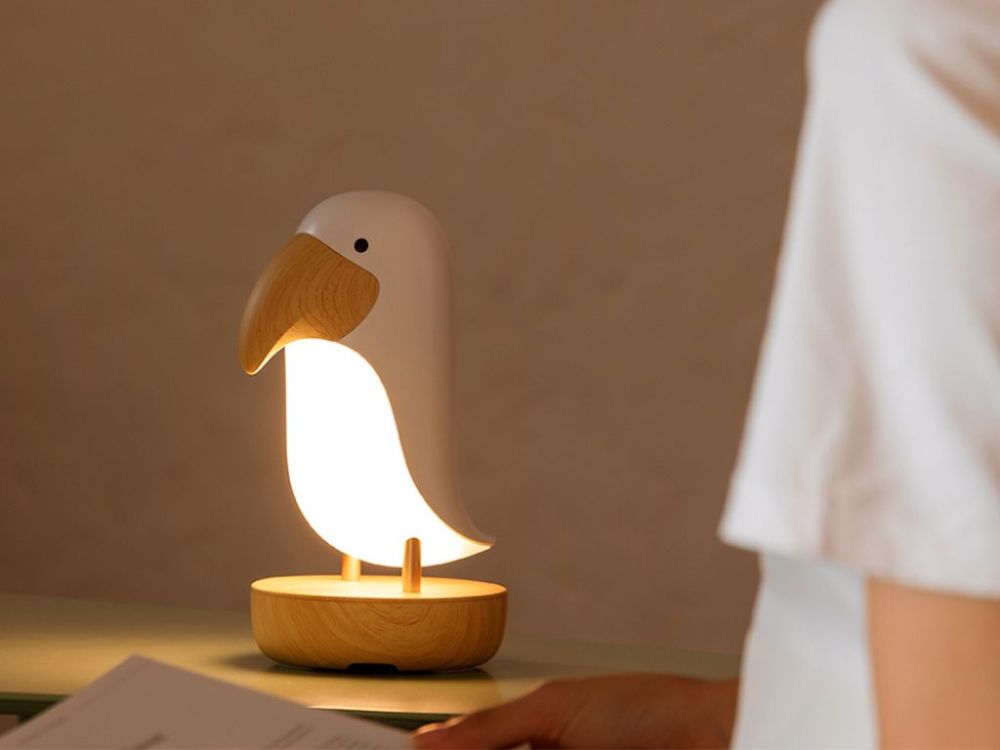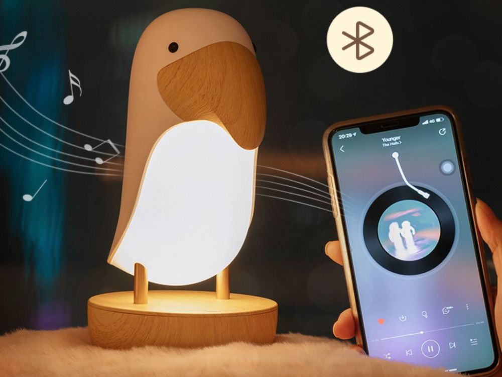 Lampica Ptičica s Bluetooth zvučnikom i RGB osvjetljenjem. Podesivi sjaj, dodirno upravljanje, baterija 1200mAh. Idealna za djecu od 3 godine.