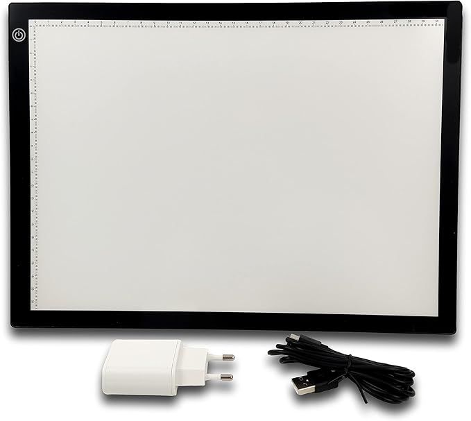 Svjetlosni stol – A4 zahvaljujući USB napajanju kompatibilan je s mrežnim adapterom, računalom i powerbankom, što ga čini potpuno prenosivim bez ograničenja. Tanak profil lako se pohrani ili prenese, a skala u centimetrima po rubu čini ga korisnim i za precizne likovne i obrazovne projekte.