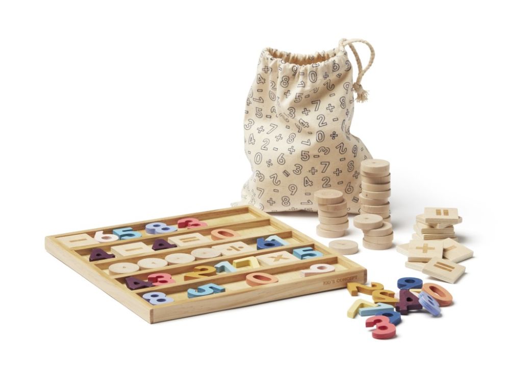 Sada je još zabavnije razumjeti matematiku . Jednostavno okrenite ploču za 90 stupnjeva i dobit ćete retke ili stupce po potrebi. Na primjer, okrugli drveni dijelovi mogu predstavljati 1, 10 ili 100, ovisno o tome na kojoj ste razini brojanja. Za mlađu djecu, mogu se koristiti za izračunavanje koliko jabuka mama dobiva, a koliko tata, na primjer. Jedino ograničenje je vaša mašta. Pojedinačni dijelovi također olakšavaju razumijevanje kako je sve povezano, jer ih možete fizički pomicati naprijed-natrag dok ne pronađete pravo rješenje. Naravno, tu su i brojevi i matematički znakovi koji pokazuju kako izgledaju zbrajanje, oduzimanje, dijeljenje i množenje . Kada završite s računanjem , sve dijelove možete pohraniti u priloženu platnenu vrećicu . Ova fleksibilna i edukativna igračka idealna je za mlađu djecu koja su zainteresirana za brojeve i jednostavnu aritmetiku ili za mlađu školsku djecu.
