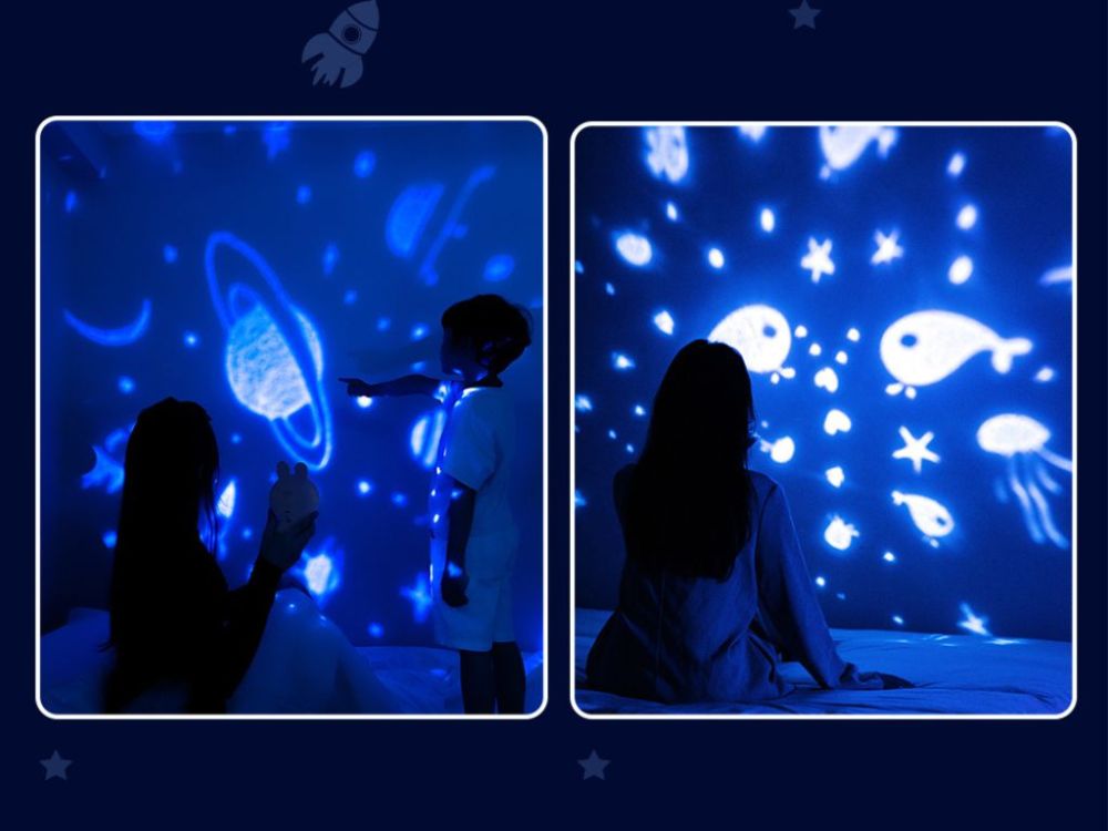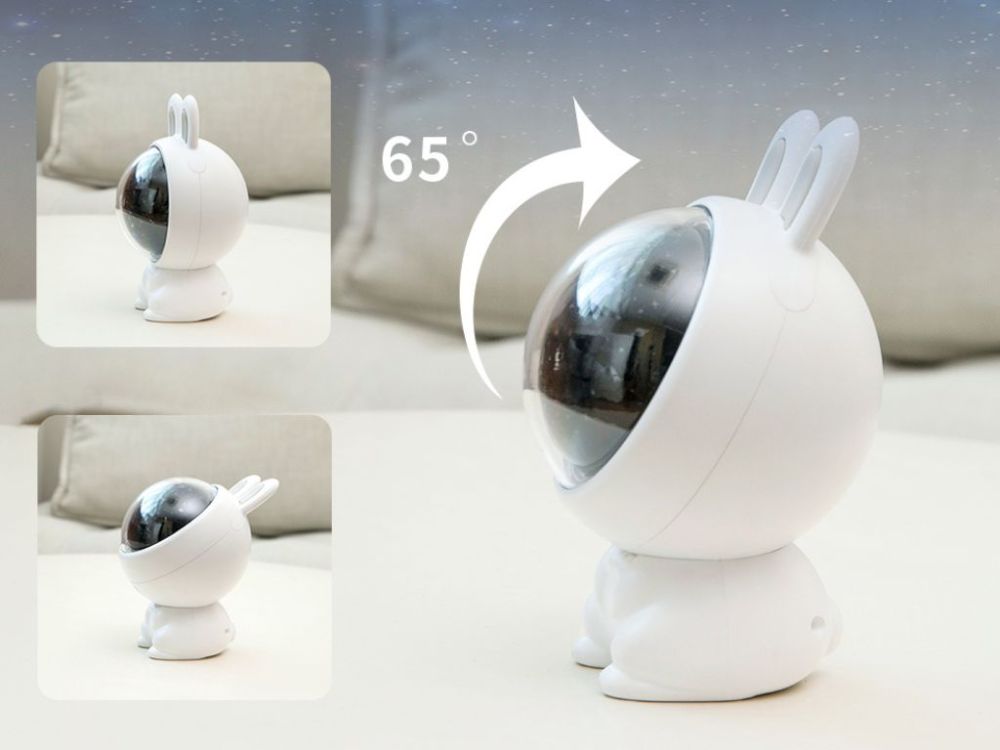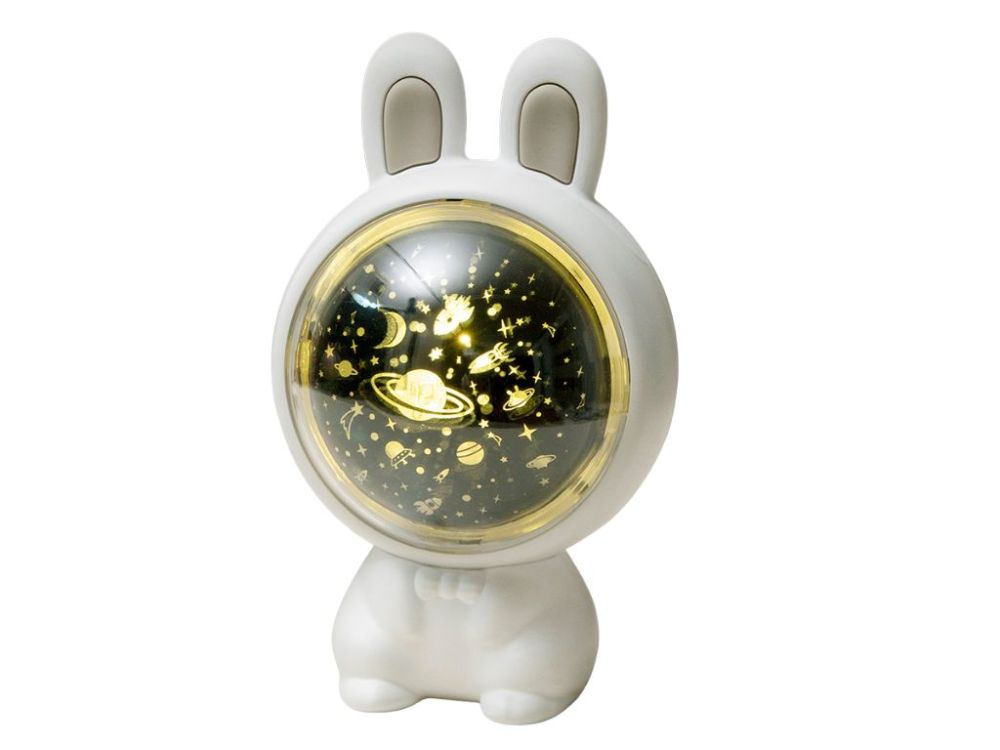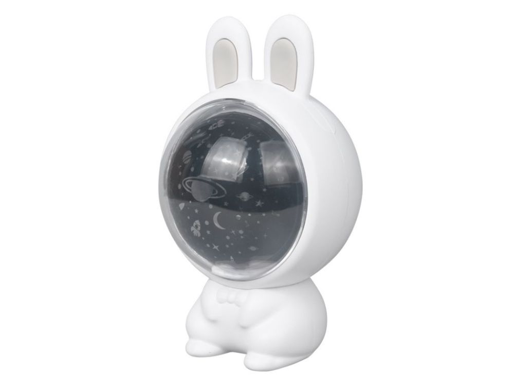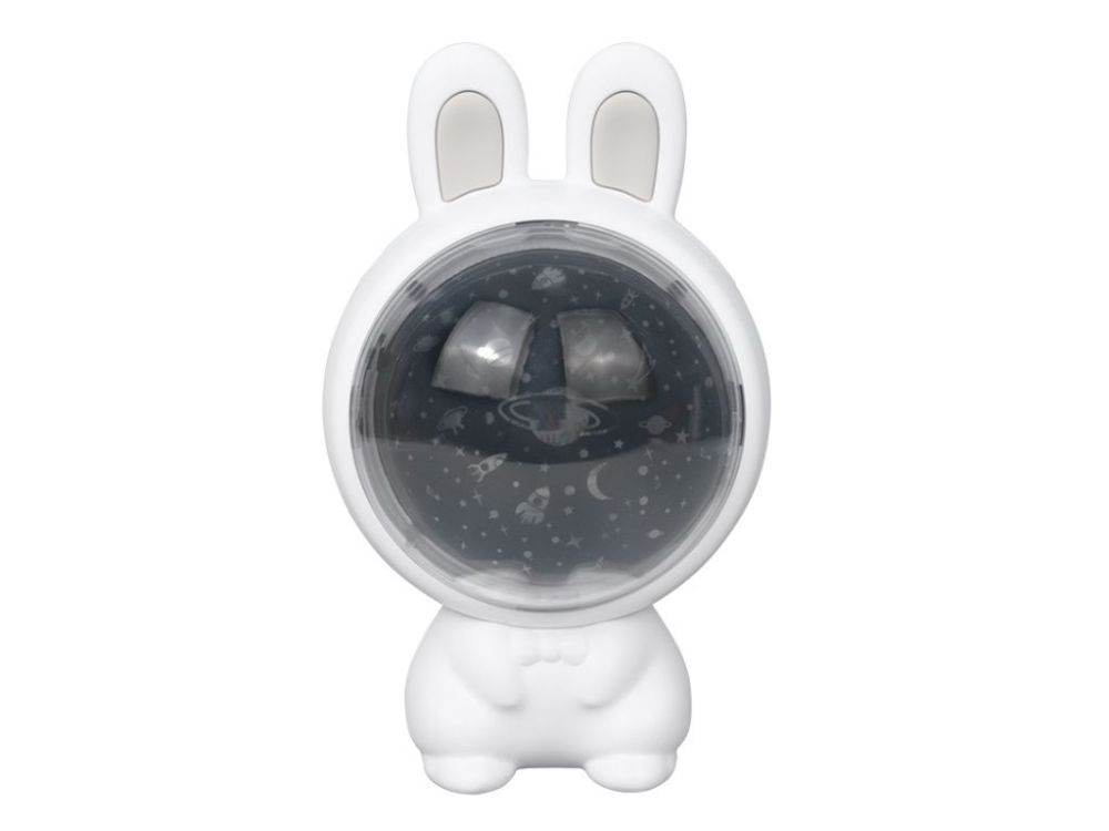 Dječji projektor Zeko s 3 zamjenjive folije, RGB svjetlom i glazbom. Baterija 1200mAh, izdržljivost do 24 sata. Siguran za djecu od 3 godine.